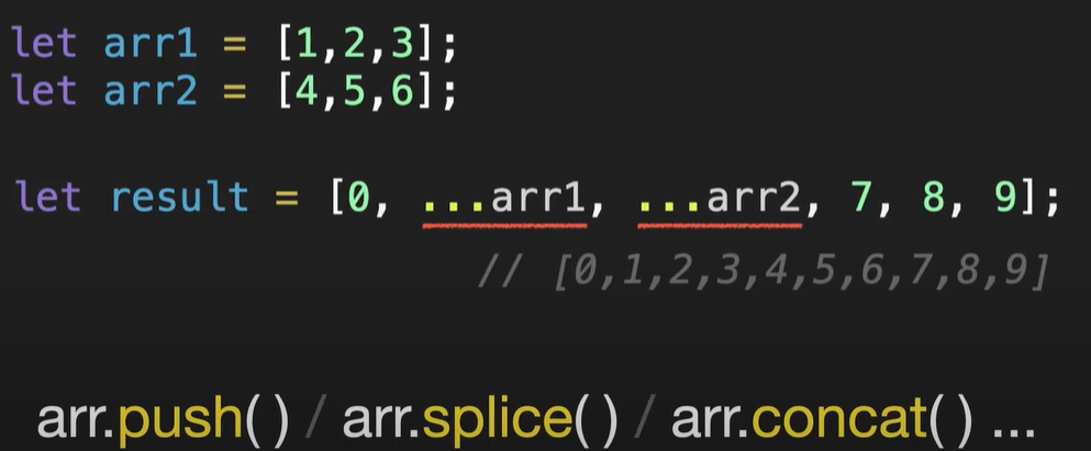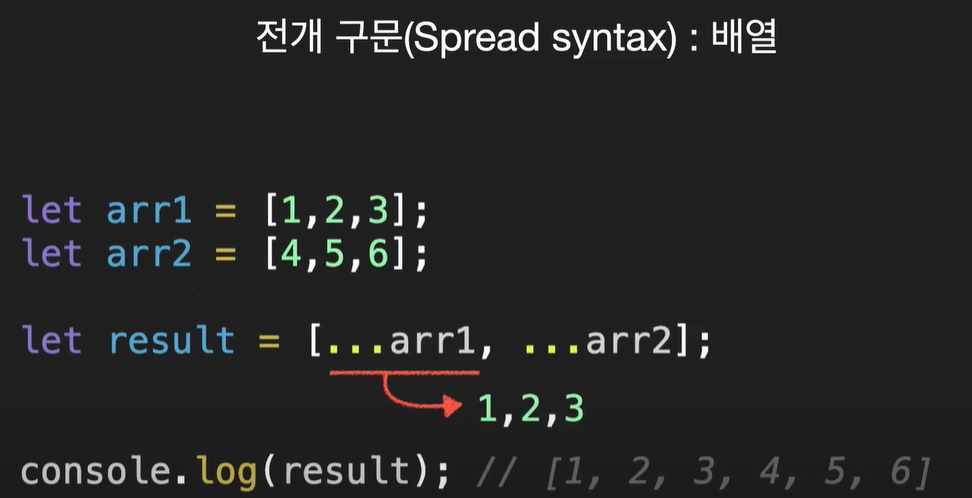 4. 전개 구문(Spread syntax) : 배열, 객체, 복제