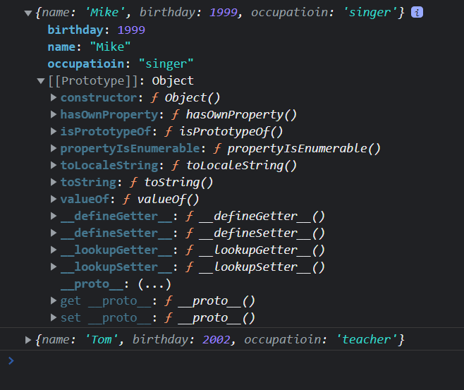 User { name: 'Mike', age: 30, skills: [ 'html', 'css' ] }