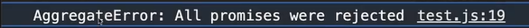 - 그러나 Promise.any 를 사용했을 때 모두 reject 면 모든 프로미스가 거부당했다는 메시지를 반환한다.